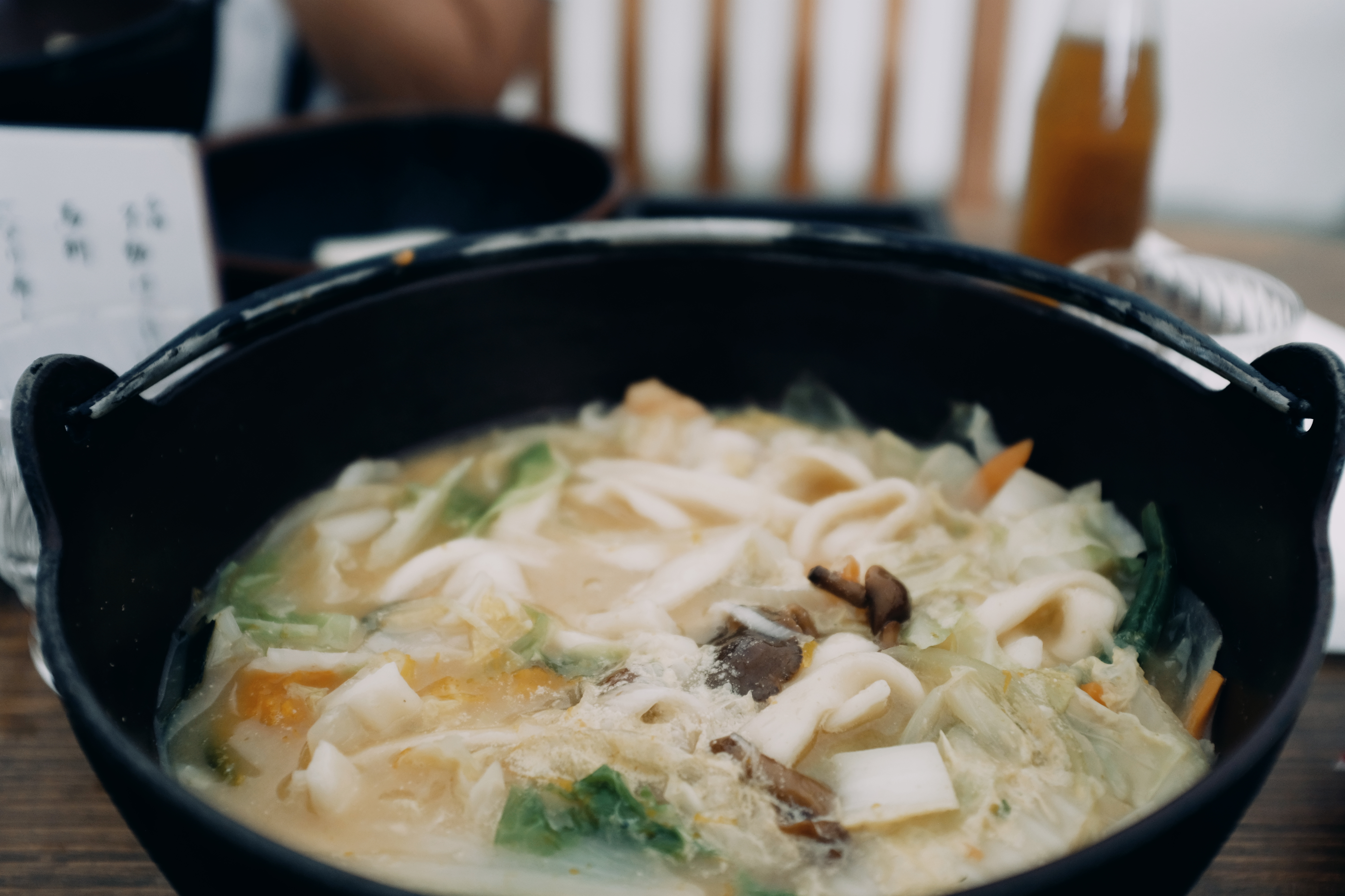 〆は、出汁がたっぷり出たスープで煮込む、山梨名物のほうとうです。